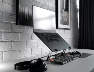 다음 단계는 노트북의 높이를 조정하는 것입니다. 노트북 화면의 상단은 눈 높이보다 약간 낮거나 같아야 합니다. 이 위치는 여러분이 좋은 자세를 유지하고 목에 무리를 줄이는데 도움을 줄 것입니다. 노트북이 너무 낮으면 노트북 거치대나 책 더미를 사용하여 적절한 높이로 올릴 수 있습니다.