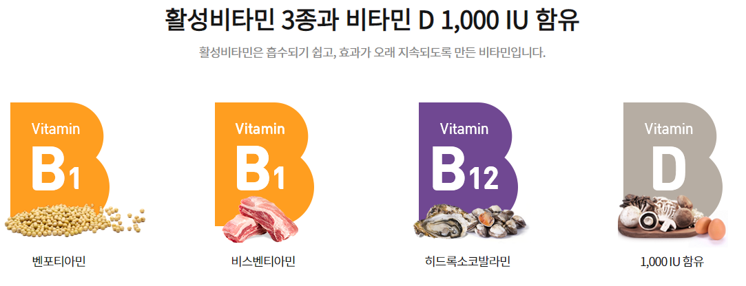 비타민B가 너무 많은 것이 아닌가 생각도 드실텐데, 아무래도 항상 바쁘고 만성피로에 시달리는 현대인들에 맞춰 피로해소에 효가가 좋은 비타민B 고함량 의약품 출시가 되는 것 같습니다.