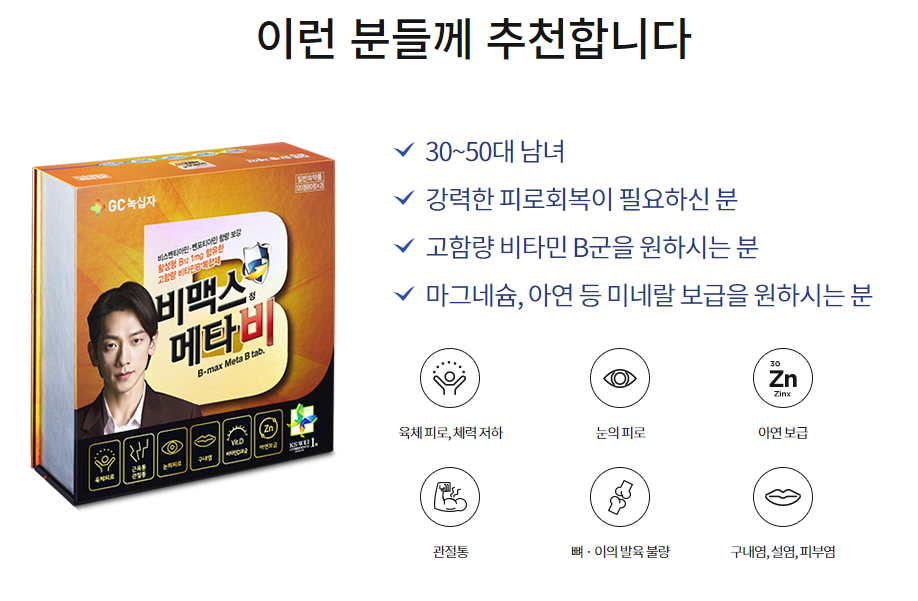 요즘 눈이 침침하고 피로해소도 안되고 몸이 예전 같지 않음을 느끼실 것입니다. 규칙적인 생활 및 식습관 그리고 운동까지 하면 얼마나 좋겠습니다만, 현 실상은 아침에 일어나서 일하러 가기 바쁘고 퇴근해서는 회식이며 육아며 건강에 신경 쓸 시간이 솔직히 없습니다. 그러다 보니 자연스레 건강기능식품, 간단히 섭취할 수 있는 영양제 등을 찾게 되는 것 같습니다. 저도 꾸준히 먹고 있는 비맥스 메타 도움을 받고 있던 중 비맥스 메타비 제품으로 바꿔서 섭취할 계획이 있어 성분 및 가격 정보 드리려 합니다.